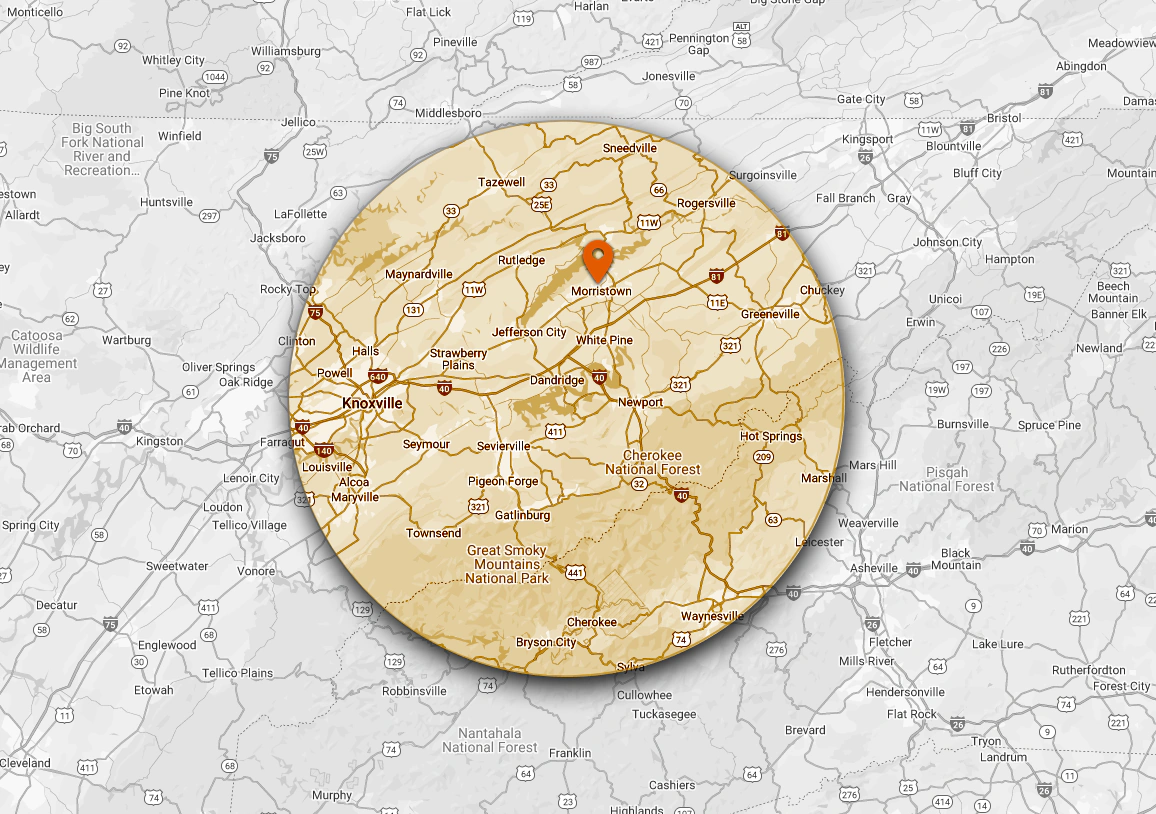 We are based in Morristown, TN, and serve surrounding areas within a 50-mile radius, covering multiple counties across Eastern Tennessee.